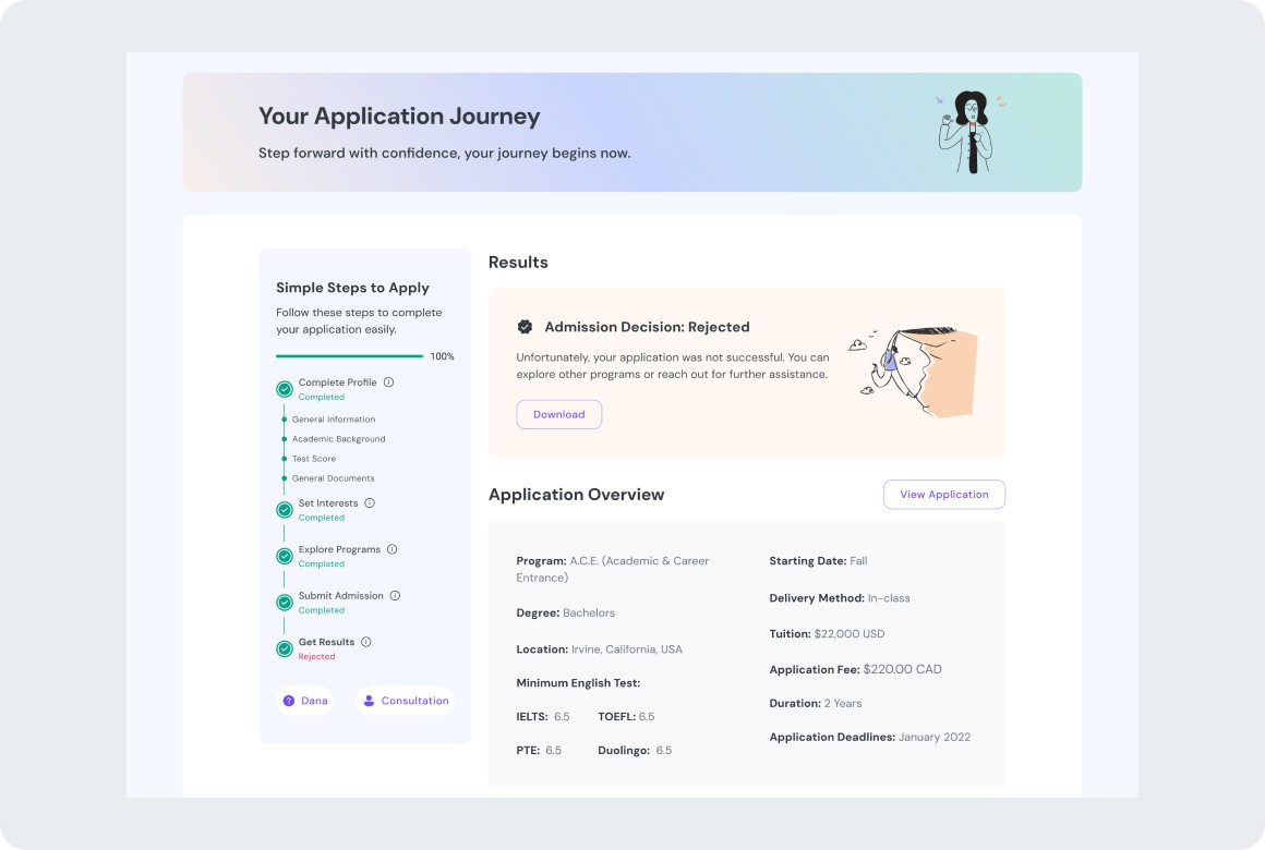Ask questions about applications, documents, deadlines, and more, Dana’s always ready with a smart answer.